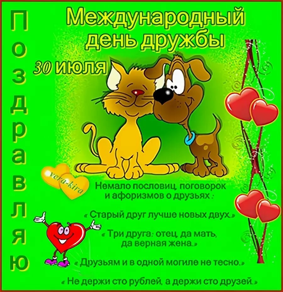 30 июля — международный день дружбы. 30 июля во всем мире празднуется международный день дружбы. В 2021 году в россии международный день дружбы отмечается 30 июля и проходит на официальном. 30 июля 2021 года мы празднуем международный день дружбы. Поздравительная открытка на 30 июля в международный день дружбы. Открытки с международным днём дружбы 30 июля. Россияне поздравляют друг друга с днём дружбы 30 июля 2021 года. Дружат не только люди, но и животные. День дружбы во всем мире отмечают 30 июля. Сегодня во многих странах мира отмечают день дружбы. Цель праздника проста и понятна — помочь людям различной веры и культуры найти общий язык. Он был учреждён 3 мая 2011 года ассамблеей оон, которая предложила разным странам и общественным организациям выделять этот день, в соответствии с местными культурными. Незабываемые стихи к празднику «международный день дружбы» на портале pozdravok.